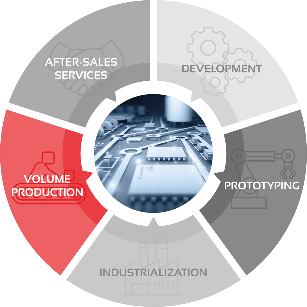 Prototyping from Prettl Electronics offers you fast solutions for electronics prototyping. We are happy to produce electronics prototyping for you, which you can receive after just 10 business days. We also focus on delivery reliability so that we can meet your desired deadline. We produce the samples under near-series production conditions on an SMD line and we also offer wave and selective soldering of THT components. We can also carry out various test procedures on request.