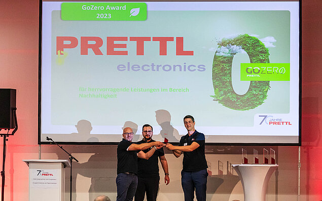 Unser GoZero-Projekt, das sich auf nachhaltige Lösungen und CO2-Neutraliät konzentriert wurde auf der 70-Jahr-Feier mit einem PRETTL Award für das "Beste GoZero Projekt 2023" ausgezeichnet. Wir haben uns gegen sechs Firmen aus der Prettl Gruppe durchgesetzt. Die Auszeichnung zeigt, wie wichtig unsere Bemühungen sind, den ökologischen Fußabdruck zu reduzieren und nachhaltige Lösungen zu entwickeln. Diese Ehrung gebührt jedem einzelnen der PRETTL Electronics Mitarbeiter die an diesem Projekt mitgewirkt haben.
